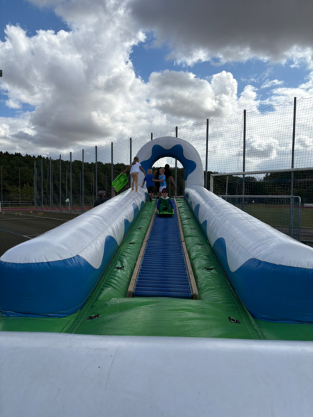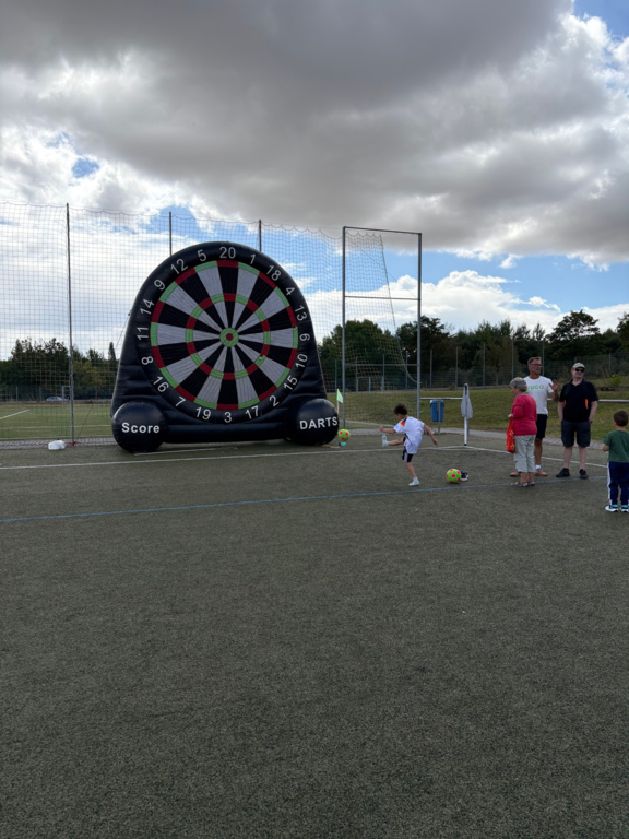 Die Kinder hatten großen Spaß an dem abwechslungsreichen Mitmach-Parcours mit vielen spannenden Stationen – darunter Sommerski, Schubkarrenrennen und ein Bobbycar-Parcours. Für ihre Teilnahme wurden sie mit tollen Mitmachpreisen belohnt, die von zahlreichen Sponsoren zur Verfügung gestellt wurden. Selbst ein plötzlicher Regenschauer konnte der fröhlichen Stimmung nichts anhaben: Nach einer kurzen Pause ging es mit ungebrochener Begeisterung weiter. Auch das beliebte Kinderschminken war wieder ein voller Erfolg und sorgte für leuchtende Kinderaugen. Für das leibliche Wohl der Gäste war bestens gesorgt. Dank zahlreicher engagierter Helferinnen und Helfer stand ein vielfältiges Angebot an Speisen und Getränken bereit. Besondere Höhepunkte des Tages waren das große Fußballdart sowie die Riesenrollenrutsche, die dank großzügiger Geldspenden von Sponsoren möglich wurden.
